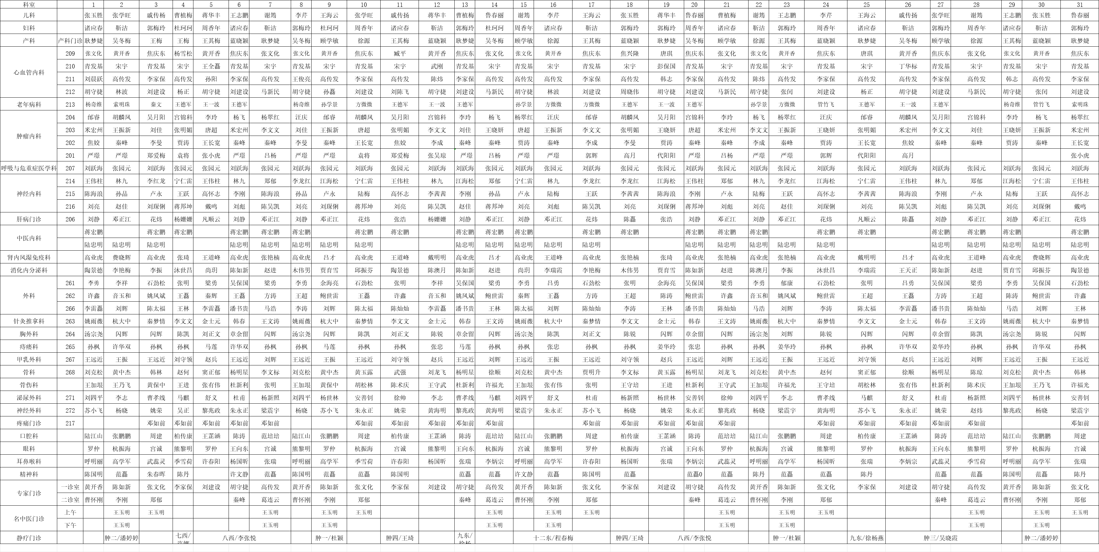 2025年10月份新区急诊科、口腔科、眼科、医技科室值班表