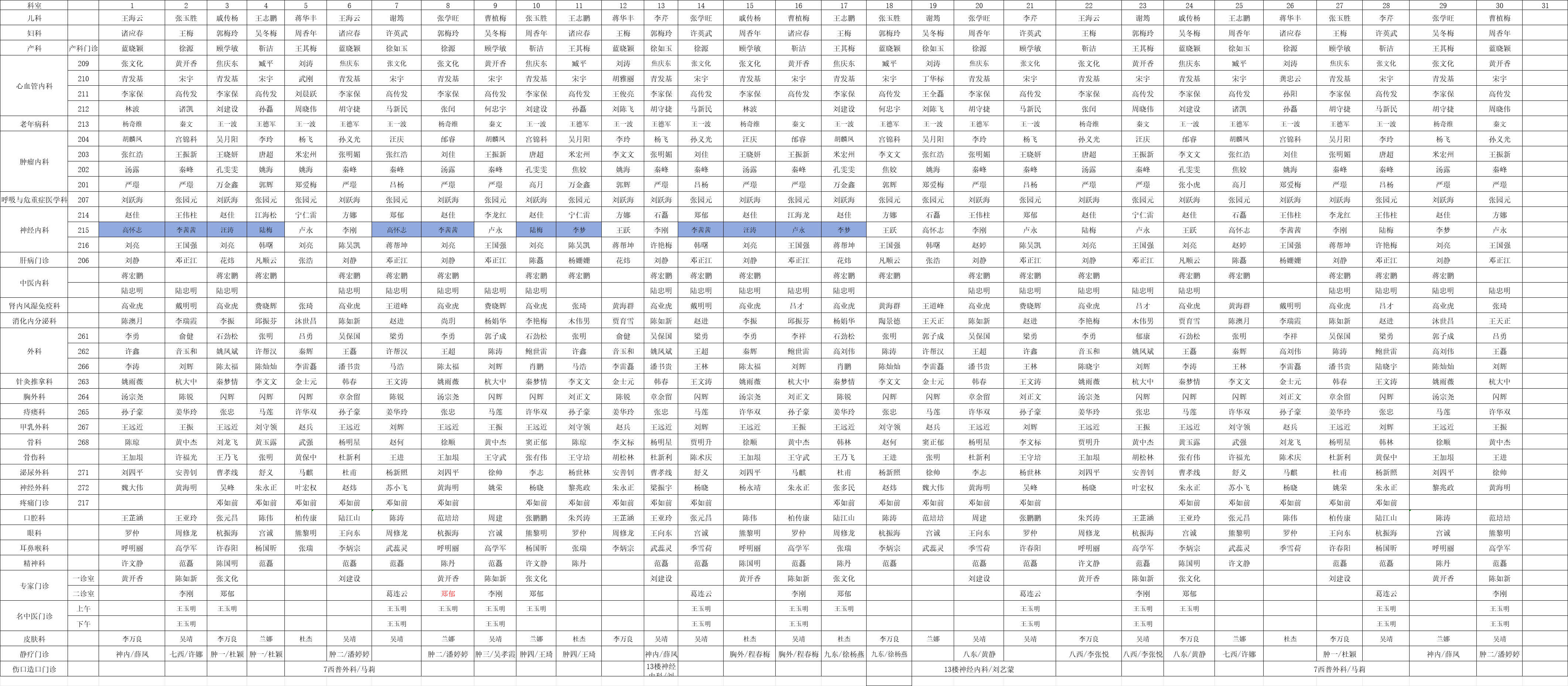 2026年4月份新区门诊排班表