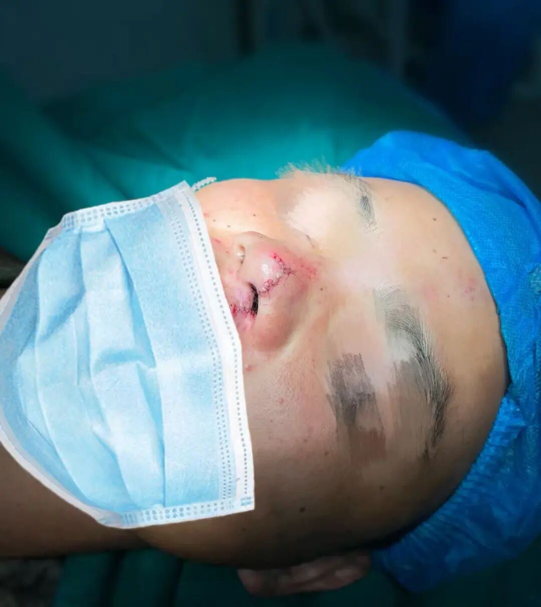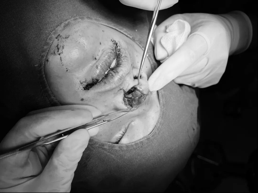 20分钟后,载有受伤战士的车辆稳稳停在医院急诊门口。张庆放带领团队立即上前,快速评估伤情:左鼻翼至左唇上方撕裂创口约3厘米,深及皮下组织,鼻软骨部分暴露,若处理不当不仅可能留下明显疤痕,还可能影响鼻部功能。看着战士略带焦虑的眼神,他轻声安抚:“放心,我们用专业的美容缝合技术,不但让你的伤恢复如初,还可以让疤痕减轻到最低程度,不会影响你后续训练和生活。”