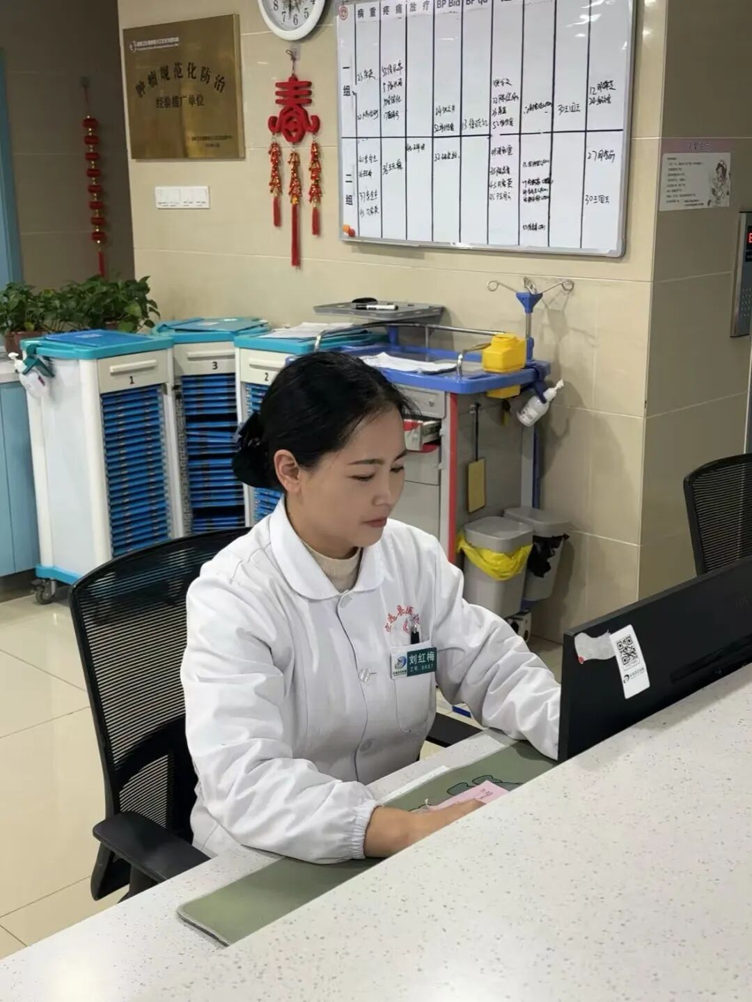 从学校踏入工作岗位后,刘红梅才真正体会到护理工作的艰辛与不易。尤其是在肿瘤内科,这里的患者大多都经历了常人难以想象的病痛折磨。他们不仅要承受化疗和放疗带来的巨大副作用,身体饱受煎熬,心理上更是承受着沉重的负担。恐惧、忧虑等负面情绪时刻萦绕在他们心头。面对这样的患者,刘红梅总是以她那特有的温柔和耐心,为他们带来安慰和勇气。她深知,肿瘤治疗不仅仅是一场医学上的攻坚战役,更是一场心灵上的激烈较量。因此,她始终将患者的心理需求放在至关重要的位置,用自己的专业知识、耐心倾听和真诚关爱,帮助患者缓解内心的压力,让他们重新找回战胜疾病的信心和勇气。
